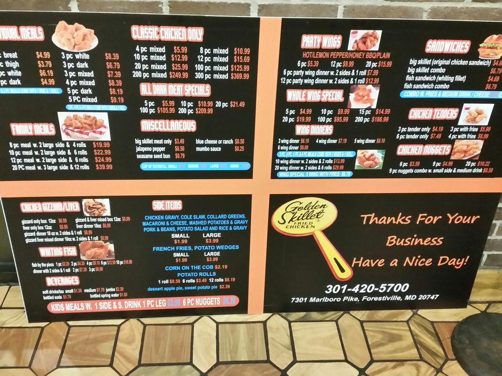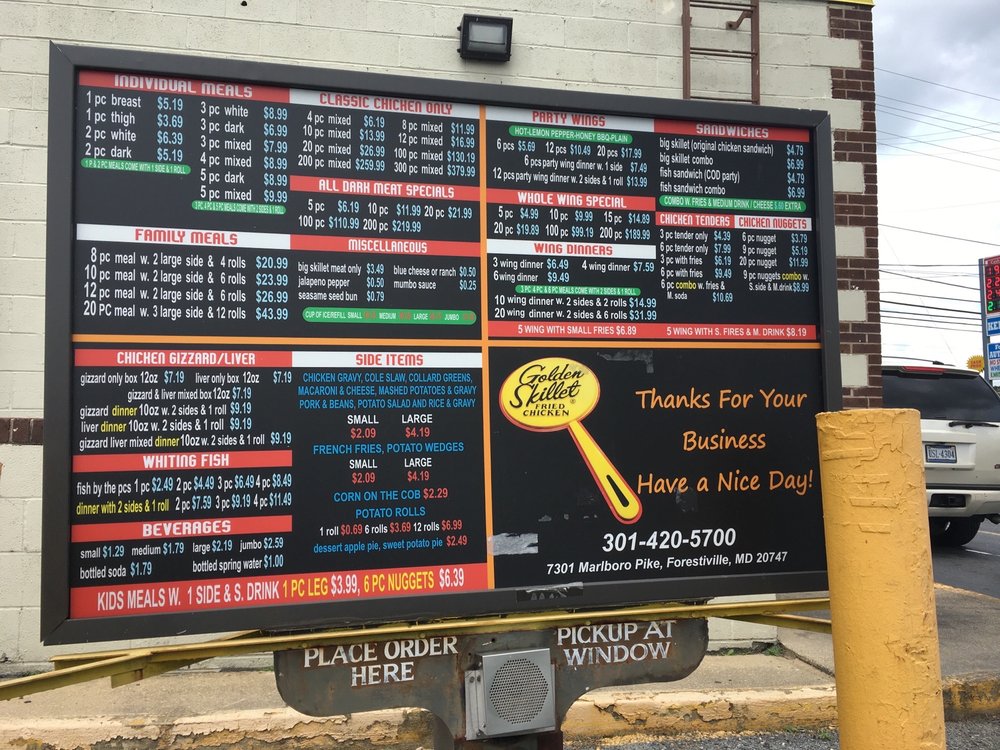 Welcome to Golden Skillet Fried Chicken, a hidden gem nestled at 7301 Marlboro Pike in District Heights, MD. This delightful eatery specializes in New American cuisine, showcasing the art of fried chicken that keeps customers raving. Guests commend the crispiness and seasoning of the chicken, alongside standout sides like collard greens and thick-cut fries. The hearty portions and drive-thru convenience cater perfectly to those on the go.